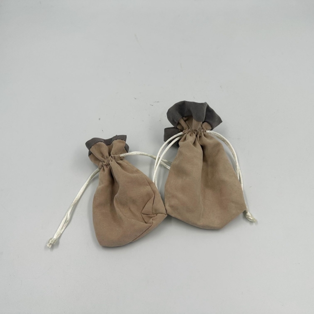 שקית בד בסיס עגול+ שרוכים בז'/אפור 8/10/3 ס"מ (10 יח')