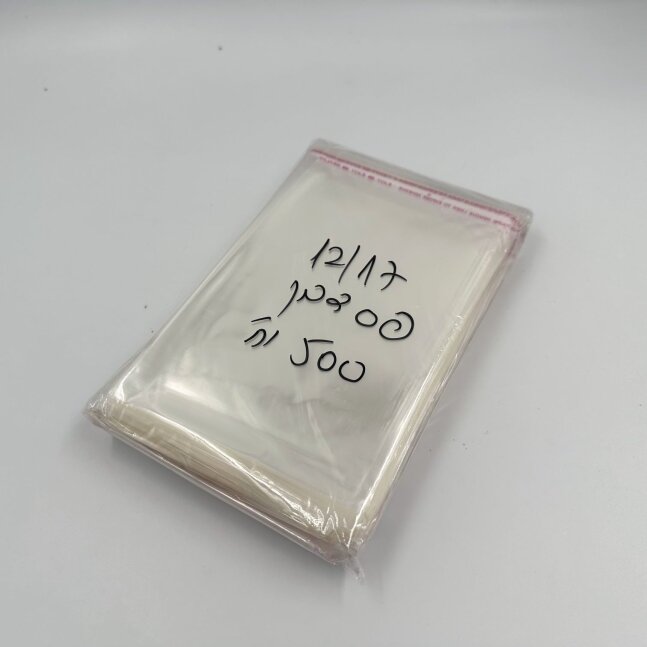 שקית צלופן BOPP 12/17+3 +פס דבק (500 בחב')
