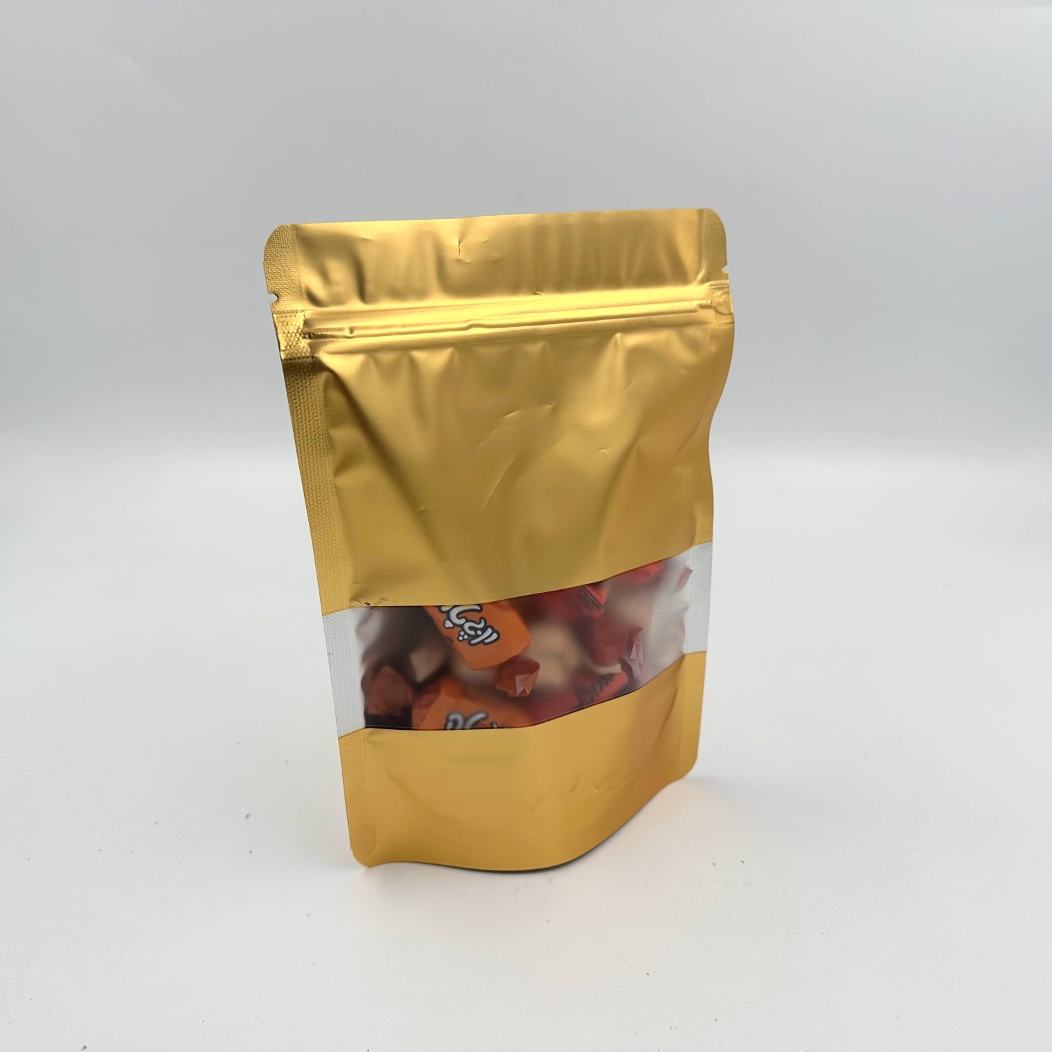 MP-1006 שקית פסגור אלומיניום זהב + חלון 14/20+4 ס"מ (100 יח')